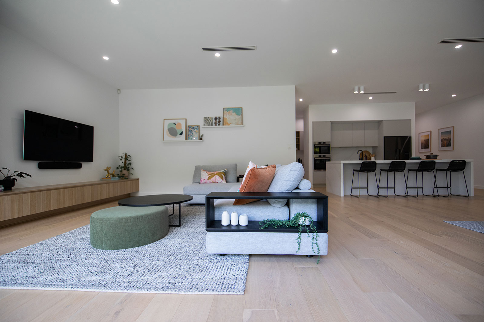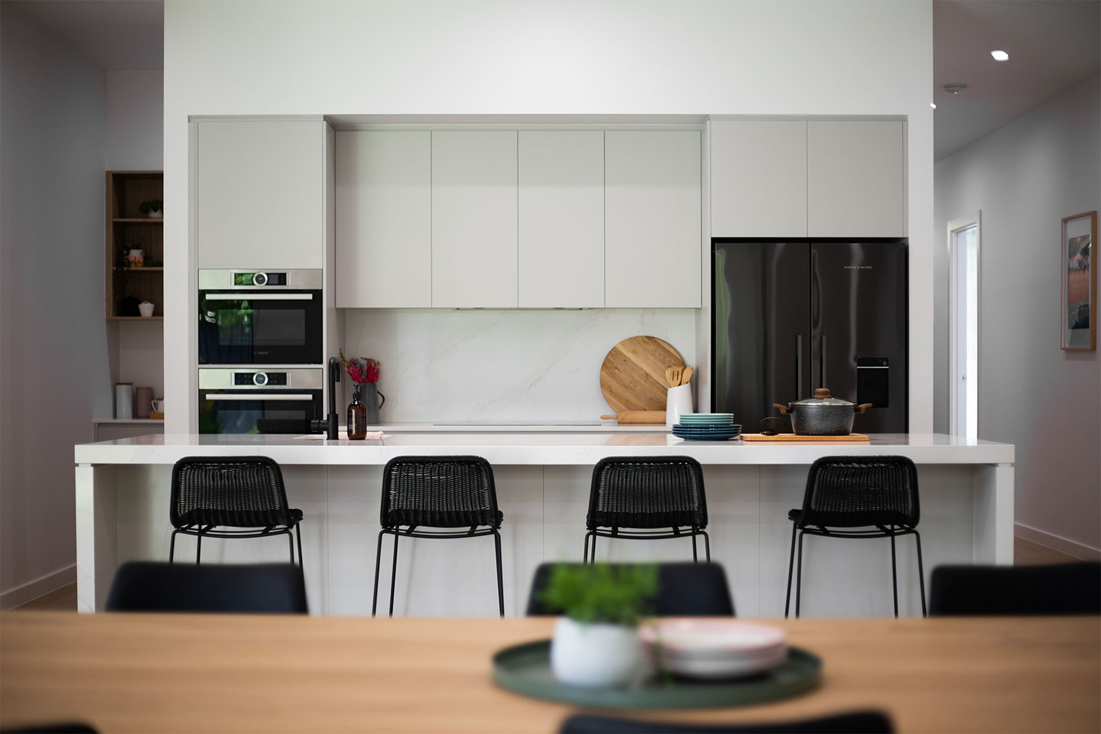 Sleek, modern and warm. Contrasts of timber and concrete, black and white, curves and straight lines. Project Jayde has a palette that will stand the test of time and a string of generous spaces that allow the family to connect with each other as the children grow and their needs constantly evolve.
