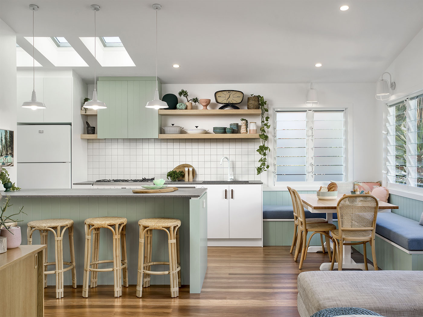 The brief included relocating the living to the rear of the home, adding in as much storage as humanly possible, creating an entertaining space for friends to congregate whilst cooking, and last but not least, to create a relaxed beach house vibe. With so much personality packed into the couple and their belongings, a lot of fun was had making their home a true reflection of their personalities and their lifestyle.