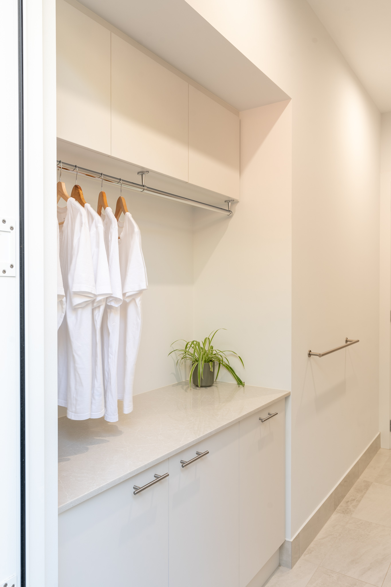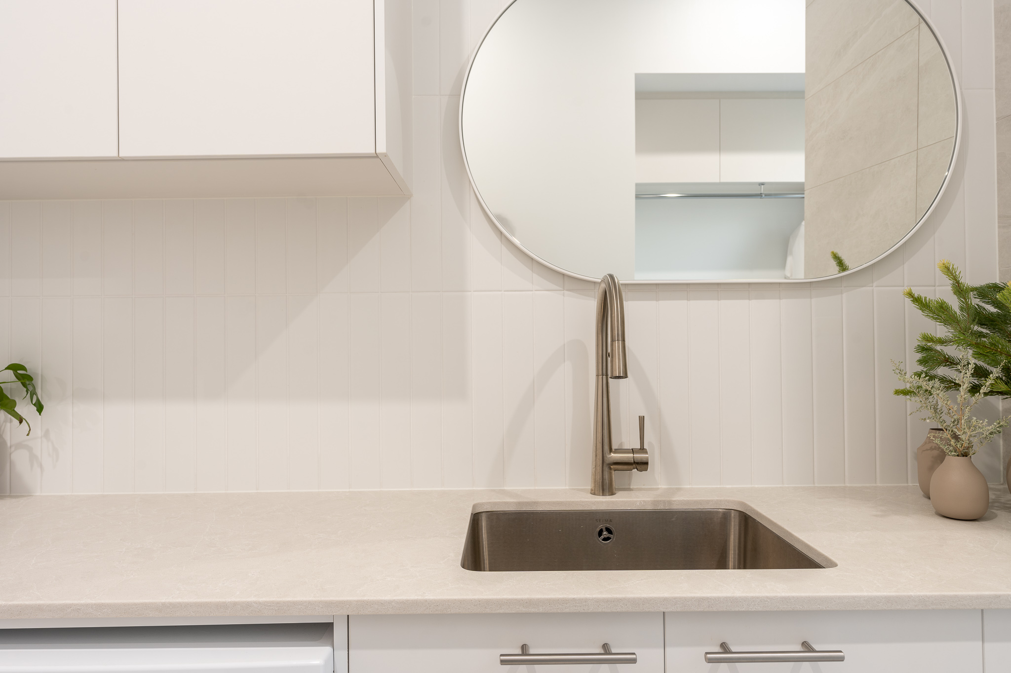 Project Quinn is a family home with a touch of mid-century modern, clean lines, curves and a very curated selection of colourways and materials. Many of us can relate to the brief for a neutral, calm palette for busy parents managing a household along with their own professional and personal commitments.