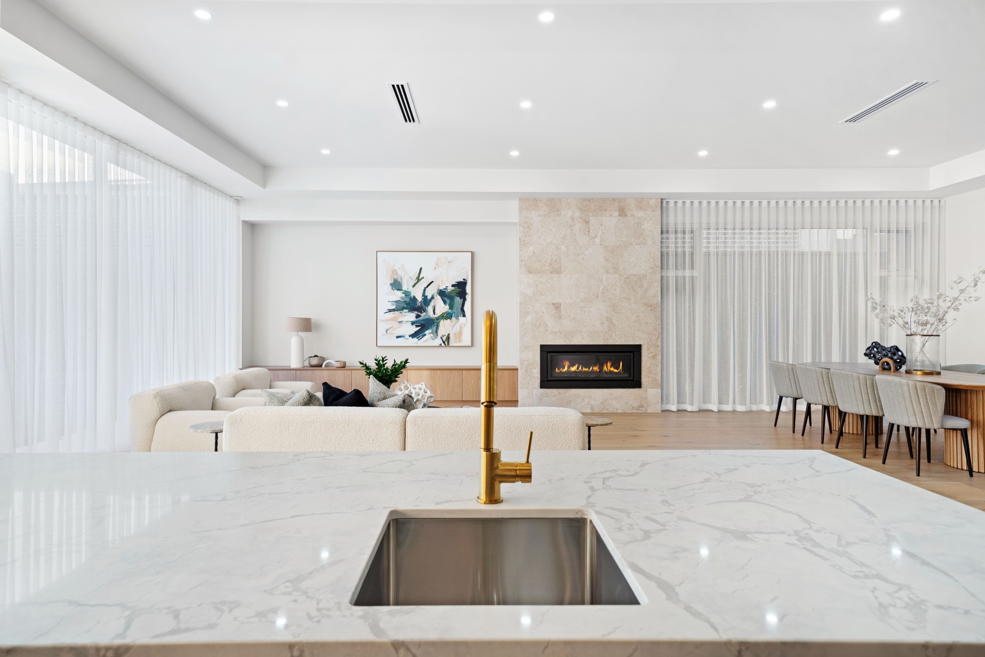 This Walkerville property is Palm Springs inspired with a neutral warm palette from the outside in, culminating in an open plan living with a kitchen that dreams are made of, and a fireplace to nap in front of on a Sunday afternoon.
